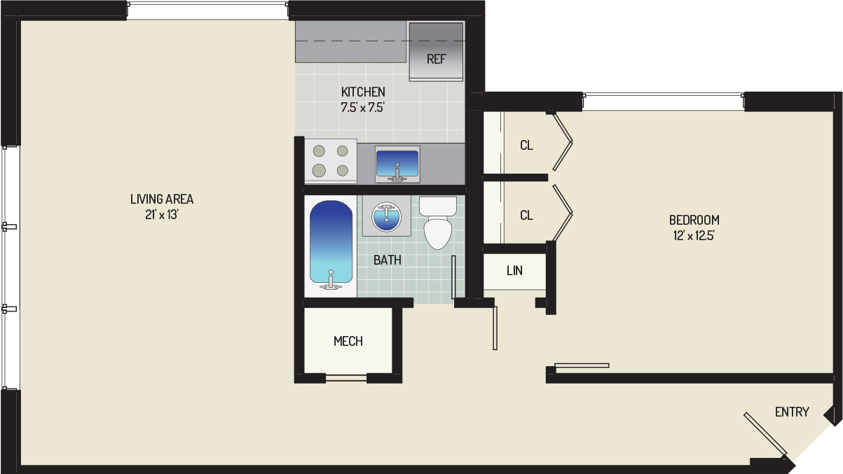 3 Bedrooms + 1 Bath 3 Beds 1 Bath 830 sqft $1,653 - $1,803 per month Inquire for Availability View Details