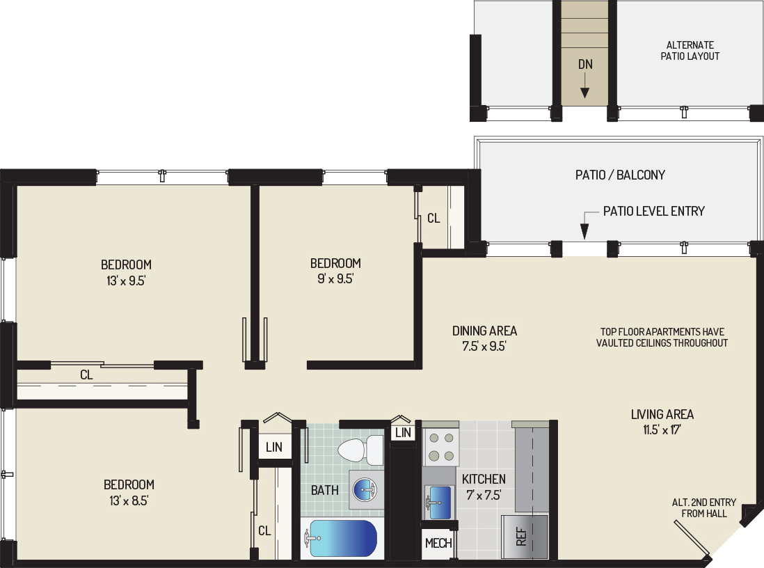 2 Bedrooms + 1 Bath 2 Beds 1 Bath 745 - 900 sqft $1,398 - $1,748 per month 6 Units Available View Details